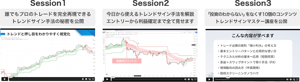 「人によって成果に差が出てしまう」 世の中のあらゆるツールに存在する この課題を解決するため、 チャートが『0.5秒』でわかる。 トレンドサインはこのコンセプトのもと 原型となるインジケーターの開発から さらに4年に及ぶ検証を経て完成しました。 なぜ、世間では、トレードで 失敗する人が後を絶たないのか? それは「分からない」という 大きな問題がひとつあります。 いつ・どこで売買すればいいのか分からない。 損切りの場所がわからない。 どうして失敗するのか分からないまま、 曖昧なトレードで大損してしまったり、 含み損を抱えたまま放置します。 こうして、投資は危ない、危険なモノ というイメージが未だに噂されているのです。 私たちTrade-Laboは、これまで延べ 5万人以上の方たちから支持されてきた ノウハウ・知識を活かし、 オイが完成させたトレンドサインだけでなく 投資の「分からない」を完全になくす ための講座も今回、ご用意しました。 今なら先着300名のみツールと講座を無料で ご利用いただけますので、どうぞお試しください。 そして、投資の理解が深まれば幸いです。